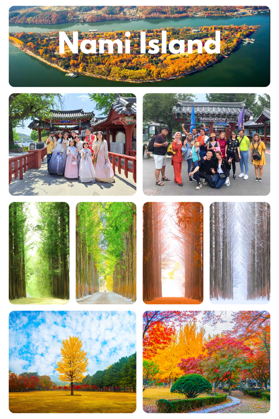 南怡岛(Nami Island)是一个充满自然的目的地,以其美丽的步行道和宁静的河边风景而闻名。